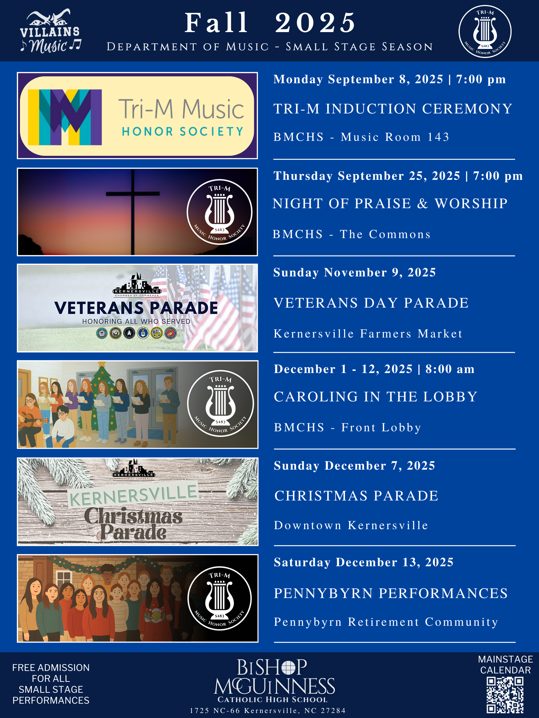 The BMCHS Department of Music has a chapter of the Nationally recognized Tri-M Music Honors Society. The Tri-M Music Honor Society is a program of the National Association for Music Education (NAfME), which focuses on creating future leaders in music education and music advocacy. Currently our chapter performs around the Triad for community volunteer outreach performances. Students are invited to audition to the society starting their sophomore year.